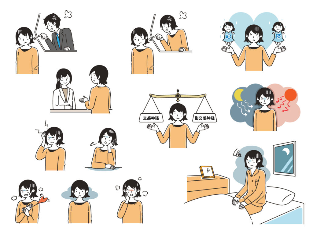 これらの症状は、いわゆる風邪症状、更年期、他の内科疾患とも共通する症状です。